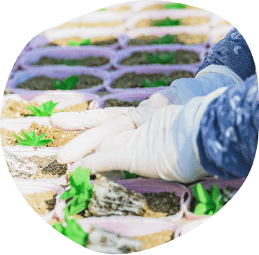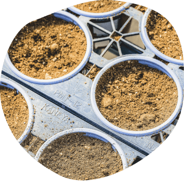 私たちは苗づくりに専念以前は、土づくりも育苗も自分たちで行っていましたが、お願いできることは専門業者に委託しています。培養土は健全な根の生育を目指して研究を重ねた水はけの良いオリジナルの培養土です。育苗も専門業者に依頼し、育苗以外の作業に力を注ぐことで優れた品質の花苗を安定的に生産しています。